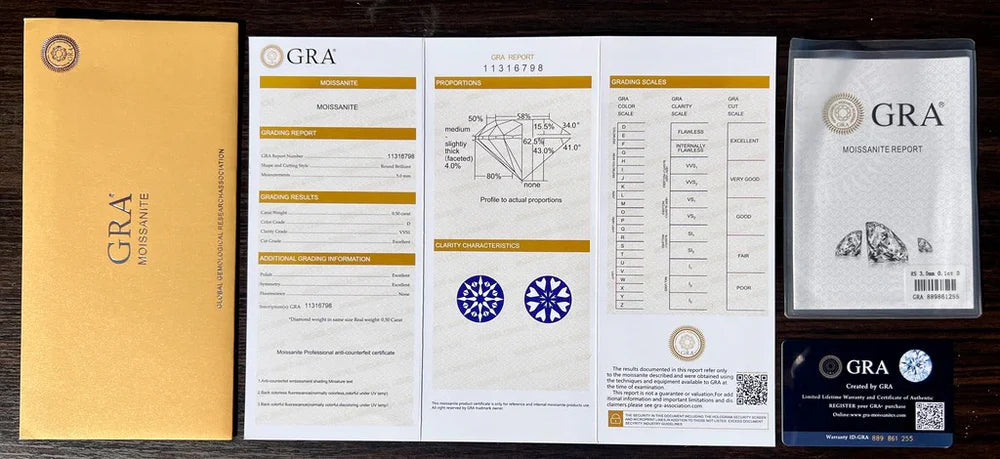 All our Moissanite stones are imported directly from USA and come with an official international gemological certificate. Unlike generic or fake alternatives, our stones are graded for color (D), clarity (VVS1), and excellent cut, ensuring the highest standard in the market. Each purchase also includes a professional appraisal for insurance purposes.